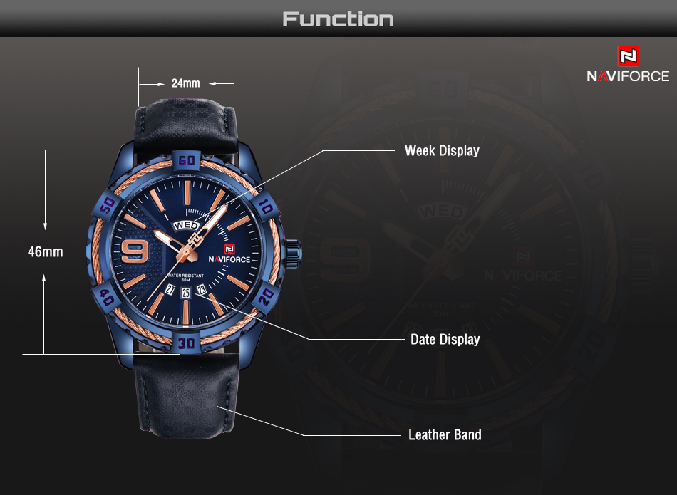 นาฬิกาข้อมือ NAVIFORCE มีการดีไซน์เท่เเละทันสมัย เรียบง่ายแต่แฝงไปด้วยความแข็งแกร่ง พร้อมให้คุณใส่เที่ยว หรือใส่ทำงานได้ทุกวันทุกเวลา เป็นนาฬิกาข้อมือราคาประหยัด และคุณภาพดี คุ้มค่าแห่งการเลือกซื้อ นาฬิกา NAVIFORCE ระบบควอทซ์ เหมาะสำหรับผู้ที่ชอบความทันสมัย เป็นอีกหนึ่งไอเท็มที่เพิ่มความมีเสน่ห์ให้คุณ สามารถเข้าได้กับ ทุกชุดไม่ว่าจะเป็นแนวไหน ตัวเรือนเป็น Alloy คุณภาพดี แข็งแรงทนทาน หน้าปัดทรงกลมผลิตจากกระจกใส บอกเวลาแบบสามเข็มใน แต่ละรุ่นมีรูปแบบที่แตกต่างกัน บ่งบอกถึงสไตส์ของคุณ 100%