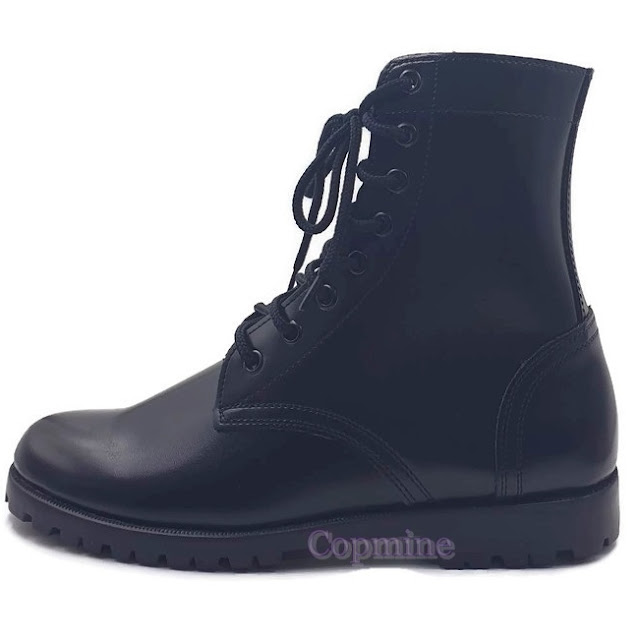 รองเท้าทหาร รองเท้าคอมแบท - ทำจากหนัง PU อย่างดี - ใส่สบาย น้ำหนักเบา - รูปทรงสวย ตัดเย็บอย่างดี - ส้นรองเท้า แข็งแรงทนทาน อัดน้ำยาอัดส้น ย้ำส้นด้วยหมุด รับประกันส้นไม่หลุดง่าย ส้นไม่อ้า - พื้นรองเท้าผลิตจากยางคุณภาพสูง เซาะร่องแล้วเย็บพื้นจริงทุกคุ๋ เสริมให้แข็งแรงทนทาน เพื่อการใช้งานได้ยาวนาน - ทนทานได้มาตรฐาน พื้นไม่อ้าง่ายเหมือนพื้นร้องเท้าที่ทากาวแล้ว หรือพื้นที่ขึ้นลายเย็บแต่ความจริงเย็บพื้นหลอก - วัดจากพื้นรองเท้าสูงประมาณ 21.5 - 22.5 ซม. ( +/- ) รวมส้น ส้นรองเท้าสูงประมาณ 3 ซม. ความสูงของรองเท้าอาจจะมีเพิ่มหรือลดจากที่แจ้งได้นิดหน่อย ขึ้นอยู่กับไซส์ของรองเท้า และการขึ้นรูปรองเท้าของช่าง งานรองเท้าทำด้วยมือความสูงจะใกล้เคียงกันแต่ไม่เท่ากันทุกคู่ หากลูกค้าซีเรียสเรื่องความสูงของรองเท้า กรุณาแจ้งเบอร์ที่ต้องการและความสูงที่ต้องการทางเราจะคัดที่ใกล้เคียงที่สุดให้ - เชือกรองเท้ามีแถมไปให้ 2 เส้น ยาวประมาณ 182 เซนติเมตร (ความยาวขึ้นอยู่กับล๊อตผลิตที่ได้มาอาจจะได้ยาว หรือสั้นกว่าที่ประมาณไว้ได้ แต่ที่แถมไปใส่ได้แน่นอน)